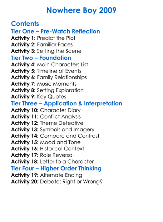 Nowhere Boy 2009 Worksheet Activity Booklet