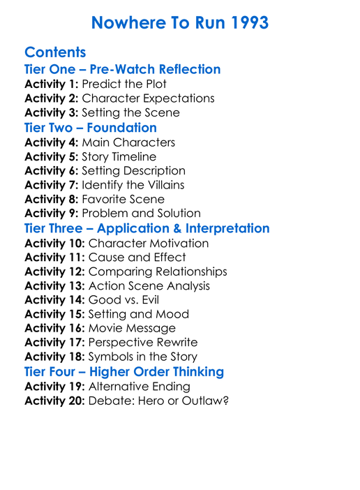 Nowhere To Run 1993 Worksheet Activity Booklet