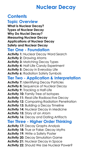 Nuclear Decay Worksheet Activity Booklet