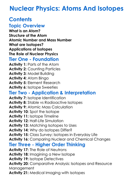 Nuclear Physics Atoms And Isotopes Worksheet Activity Booklet