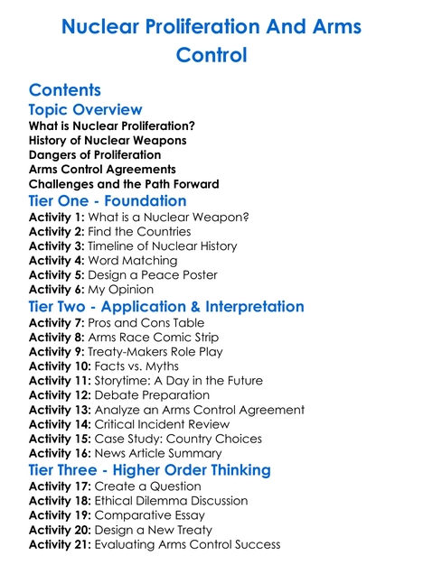 Nuclear Proliferation And Arms Control Worksheet Activity Booklet