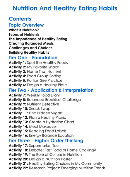Nutrition And Healthy Eating Habits Worksheet Activity Booklet