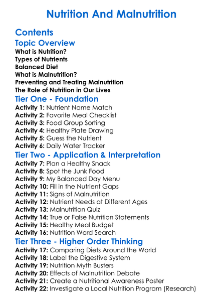Nutrition And Malnutrition Worksheet Activity Booklet