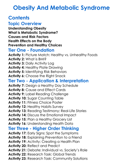 Obesity And Metabolic Syndrome Worksheet Activity Booklet