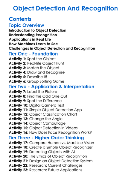 Object Detection And Recognition Worksheet Activity Booklet