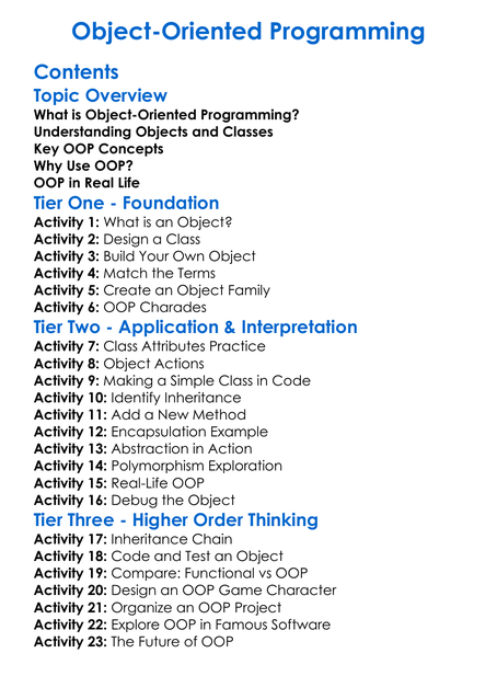 Object-Oriented Programming Worksheet Activity Booklet