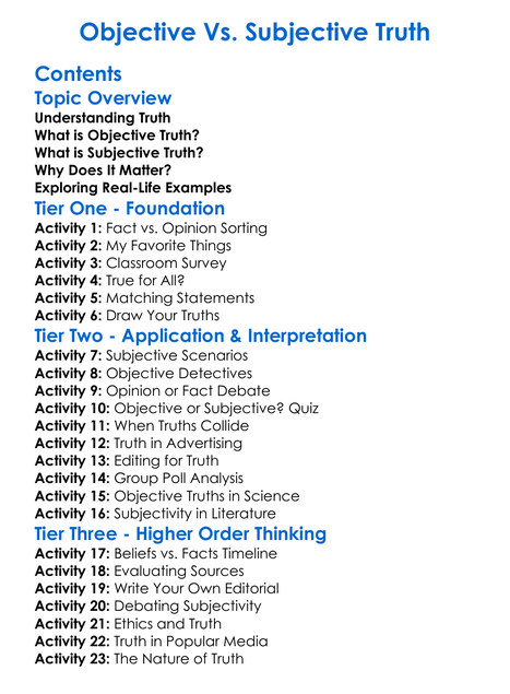 Objective Vs Subjective Truth Worksheet Activity Booklet