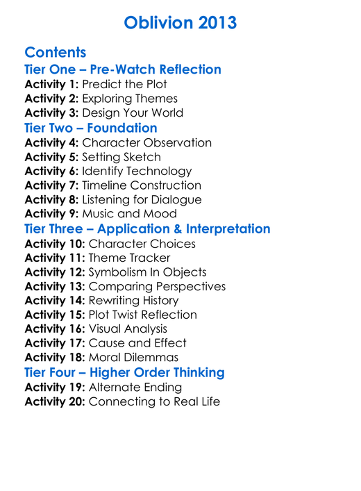 Oblivion 2013 Worksheet Activity Booklet