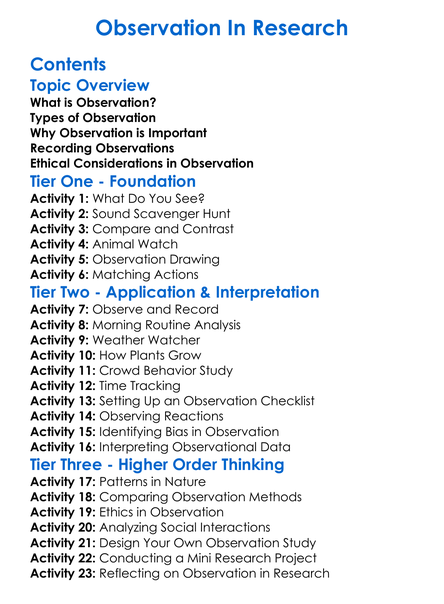 Observation In Research Worksheet Activity Booklet