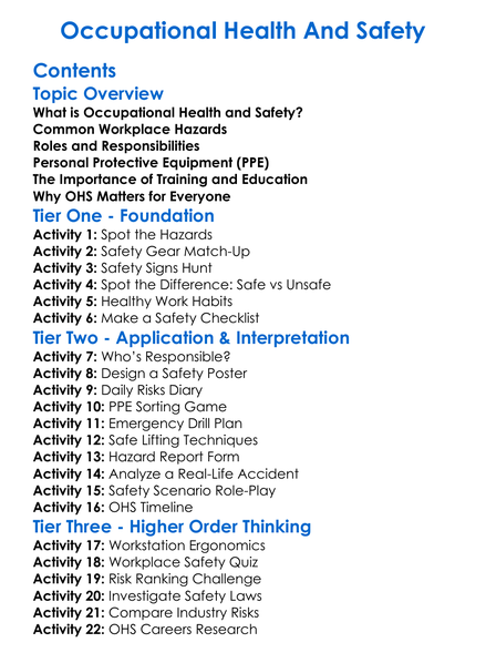Occupational Health And Safety Worksheet Activity Booklet