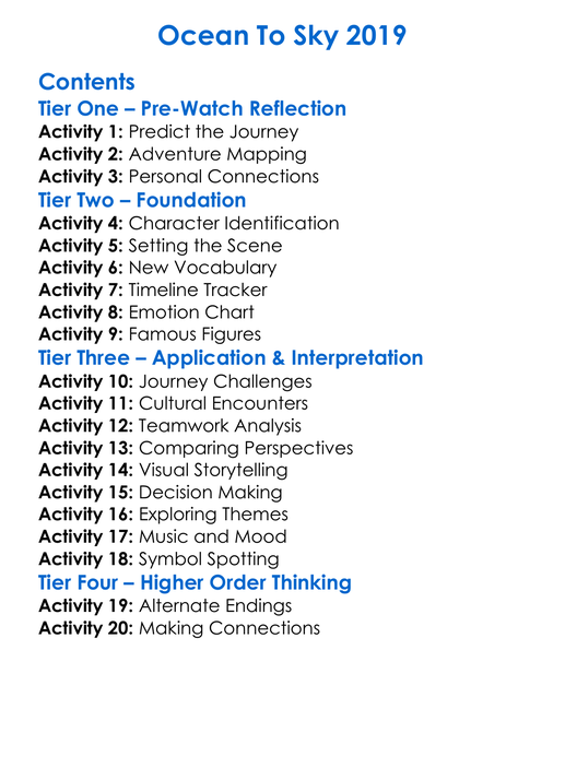 Ocean To Sky 2019 Worksheet Activity Booklet