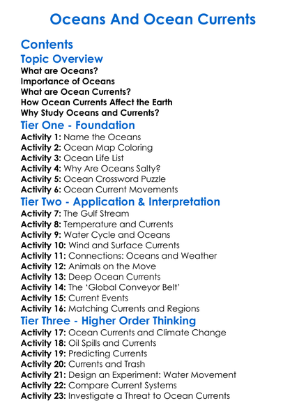 Oceans And Ocean Currents Worksheet Activity Booklet