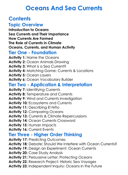 Oceans And Sea Currents Worksheet Activity Booklet