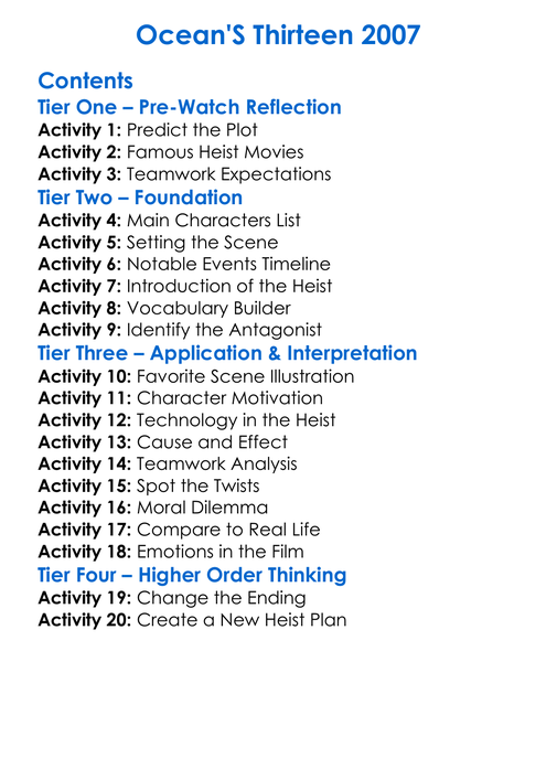 Oceans Thirteen 2007 Worksheet Activity Booklet