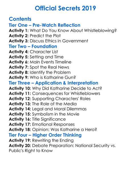 Official Secrets 2019 Worksheet Activity Booklet