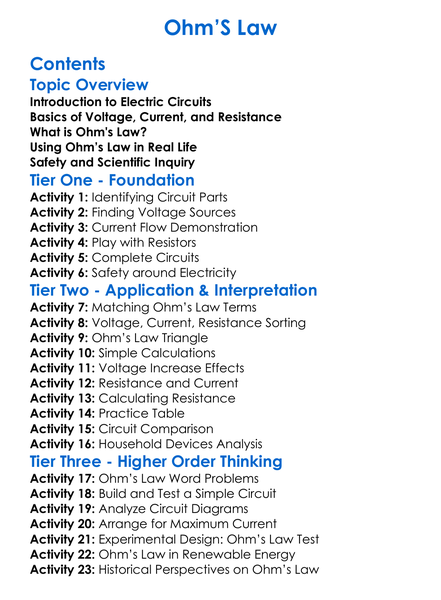 Ohms Law Worksheet Activity Booklet