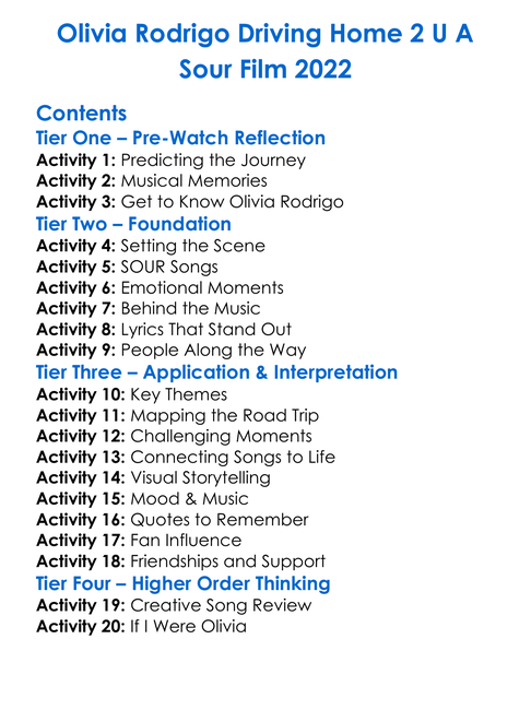 Olivia Rodrigo Driving Home 2 U A Sour Film 2022 Worksheet Activity Booklet