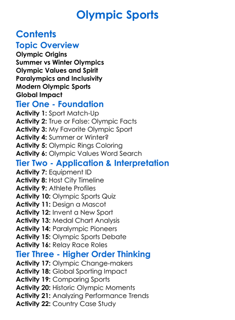 Olympic Sports Worksheet Activity Booklet