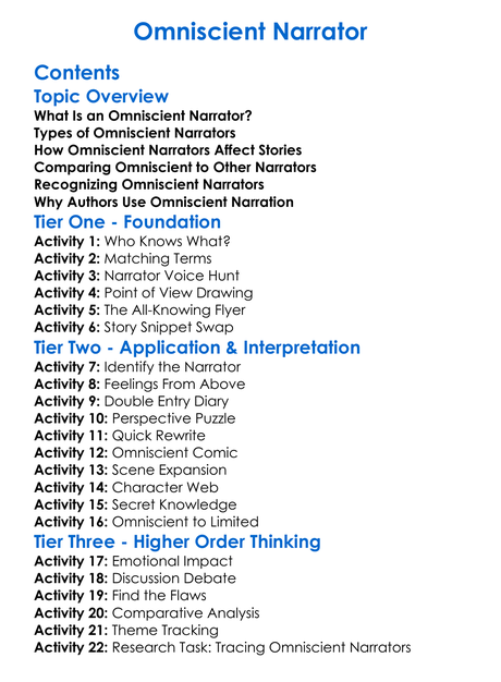 Omniscient Narrator Worksheet Activity Booklet