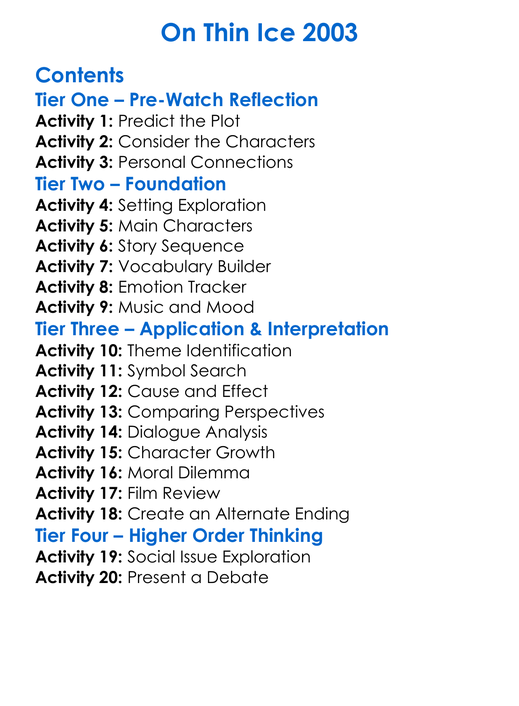 On Thin Ice 2003 Worksheet Activity Booklet