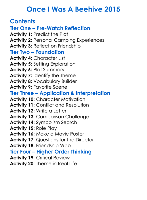 Once I Was A Beehive 2015 Worksheet Activity Booklet