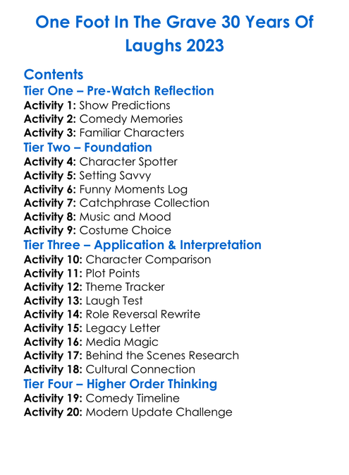One Foot In The Grave 30 Years Of Laughs 2023 Worksheet Activity Booklet