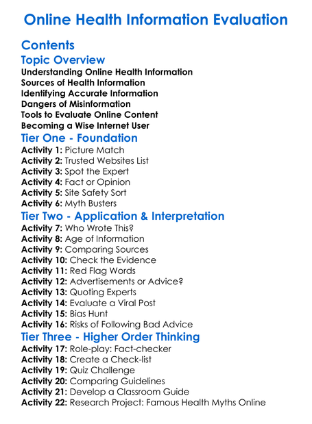 Online Health Information Evaluation Worksheet Activity Booklet