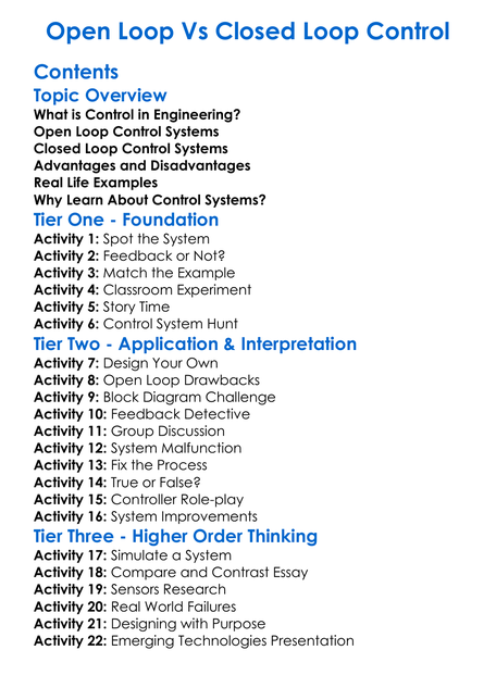 Open-Loop Vs Closed-Loop Control Worksheet Activity Booklet