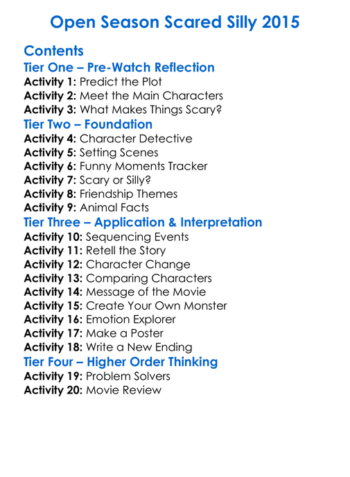 Open Season Scared Silly 2015 Worksheet Activity Booklet