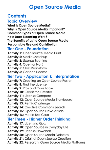 Open Source Media Worksheet Activity Booklet