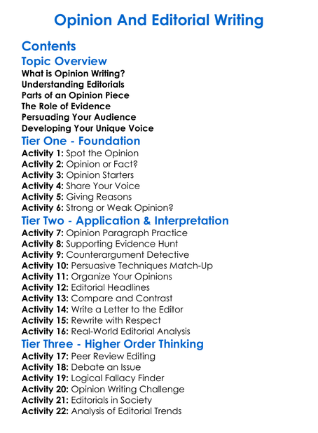Opinion And Editorial Writing Worksheet Activity Booklet