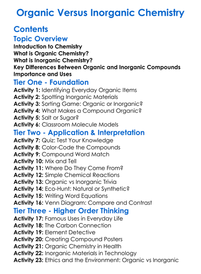 Organic Versus Inorganic Chemistry Worksheet Activity Booklet