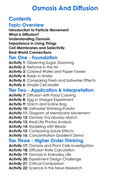 Osmosis And Diffusion Worksheet Activity Booklet