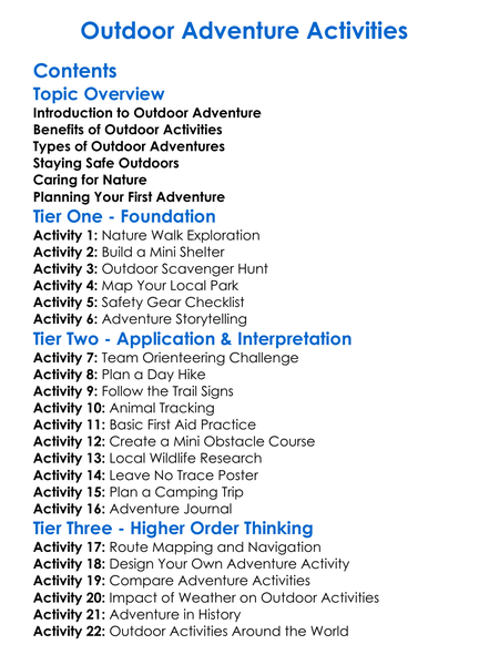 Outdoor Adventure Activities Worksheet Activity Booklet