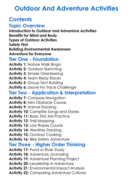 Outdoor And Adventure Activities Worksheet Activity Booklet