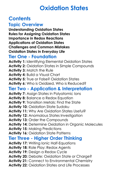 Oxidation States Worksheet Activity Booklet