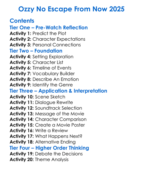 Ozzy No Escape From Now 2025 Worksheet Activity Booklet