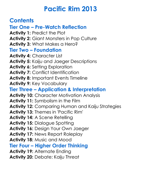 Pacific Rim 2013 Worksheet Activity Booklet