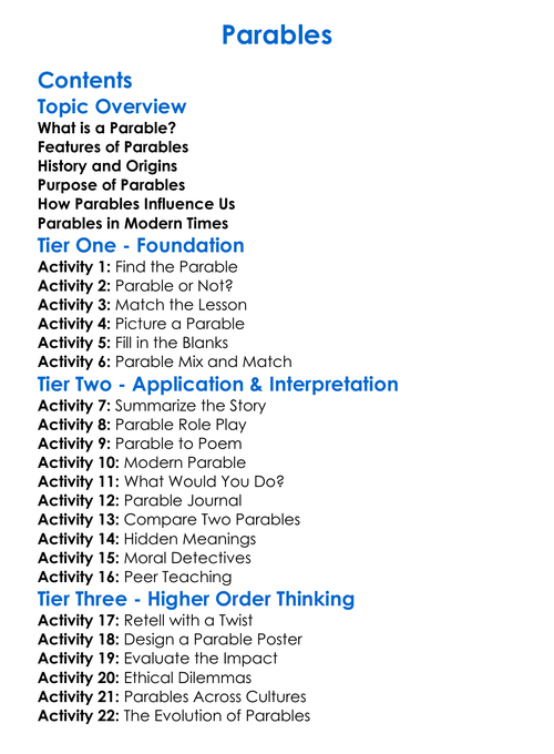 Parables Worksheet Activity Booklet