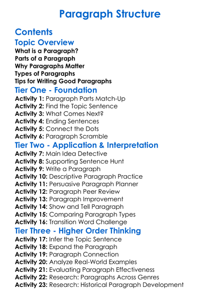 Paragraph Structure Worksheet Activity Booklet