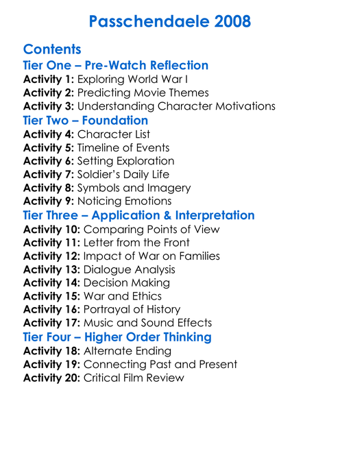 Passchendaele 2008 Worksheet Activity Booklet