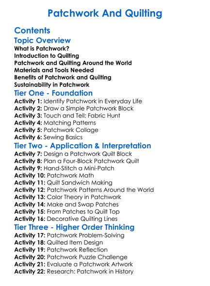 Patchwork And Quilting Worksheet Activity Booklet