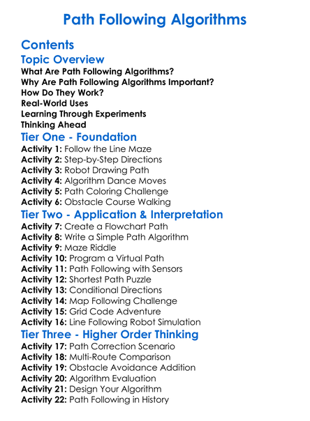 Path Following Algorithms Worksheet Activity Booklet