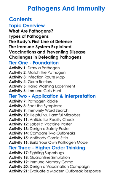 Pathogens And Immunity Worksheet Activity Booklet