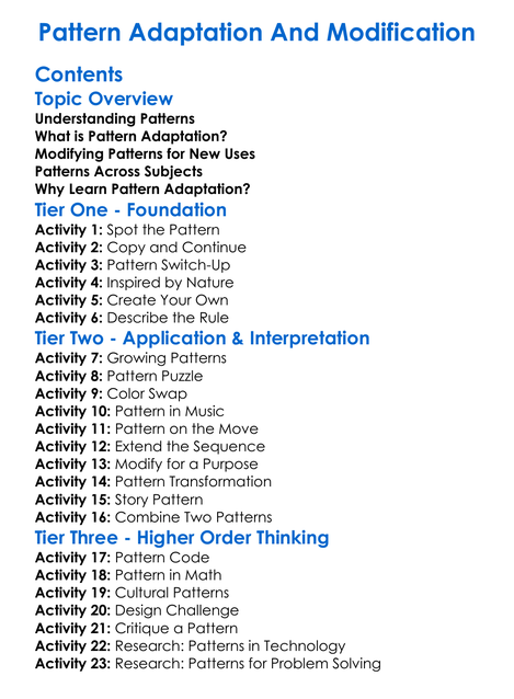 Pattern Adaptation And Modification Worksheet Activity Booklet