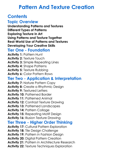 Pattern And Texture Creation Worksheet Activity Booklet