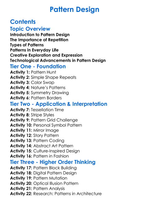 Pattern Design Worksheet Activity Booklet