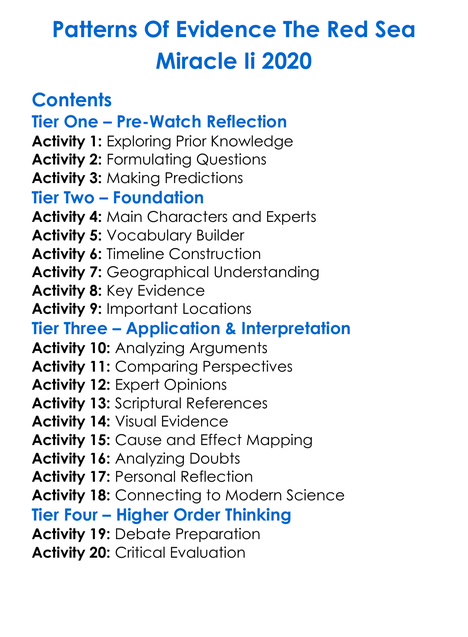 Patterns Of Evidence The Red Sea Miracle Ii 2020 Worksheet Activity Booklet