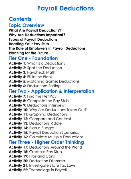 Payroll Deductions Worksheet Activity Booklet