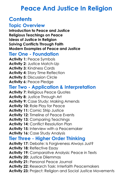 Peace And Justice In Religion Worksheet Activity Booklet